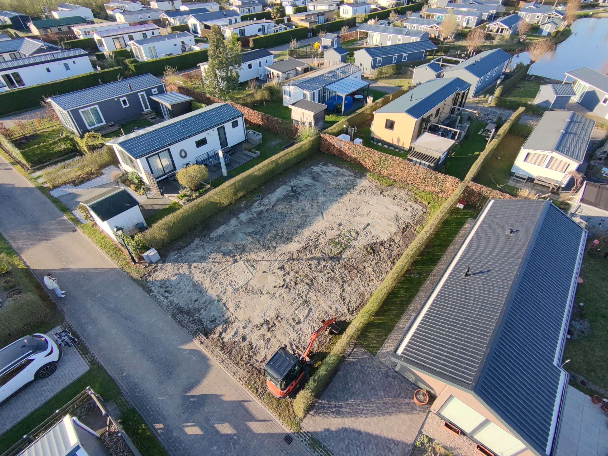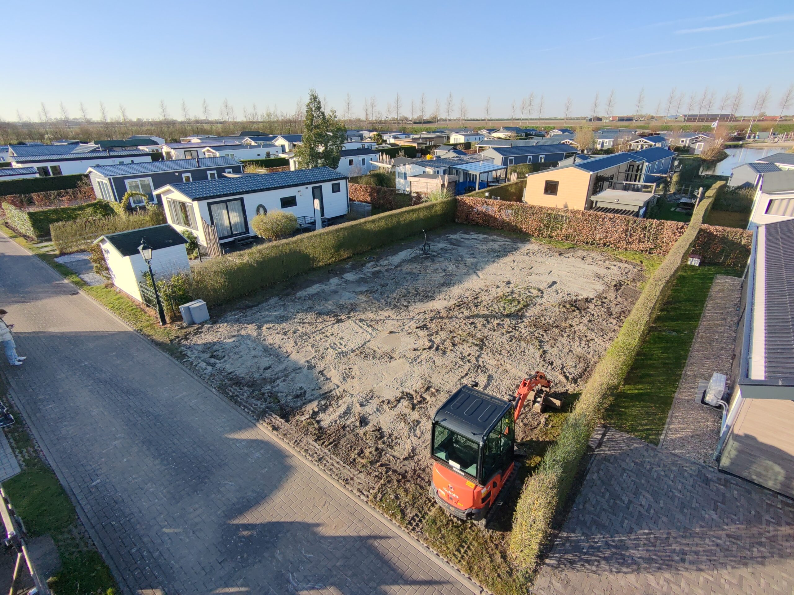 De verkoopprijs is compleet inclusief plaatsen, aansluiten, het afwerken van de onderzijde en een stelpost voor de tuinaanleg. Je hebt de vrijheid om zelf een tuinhuis te plaatsen.