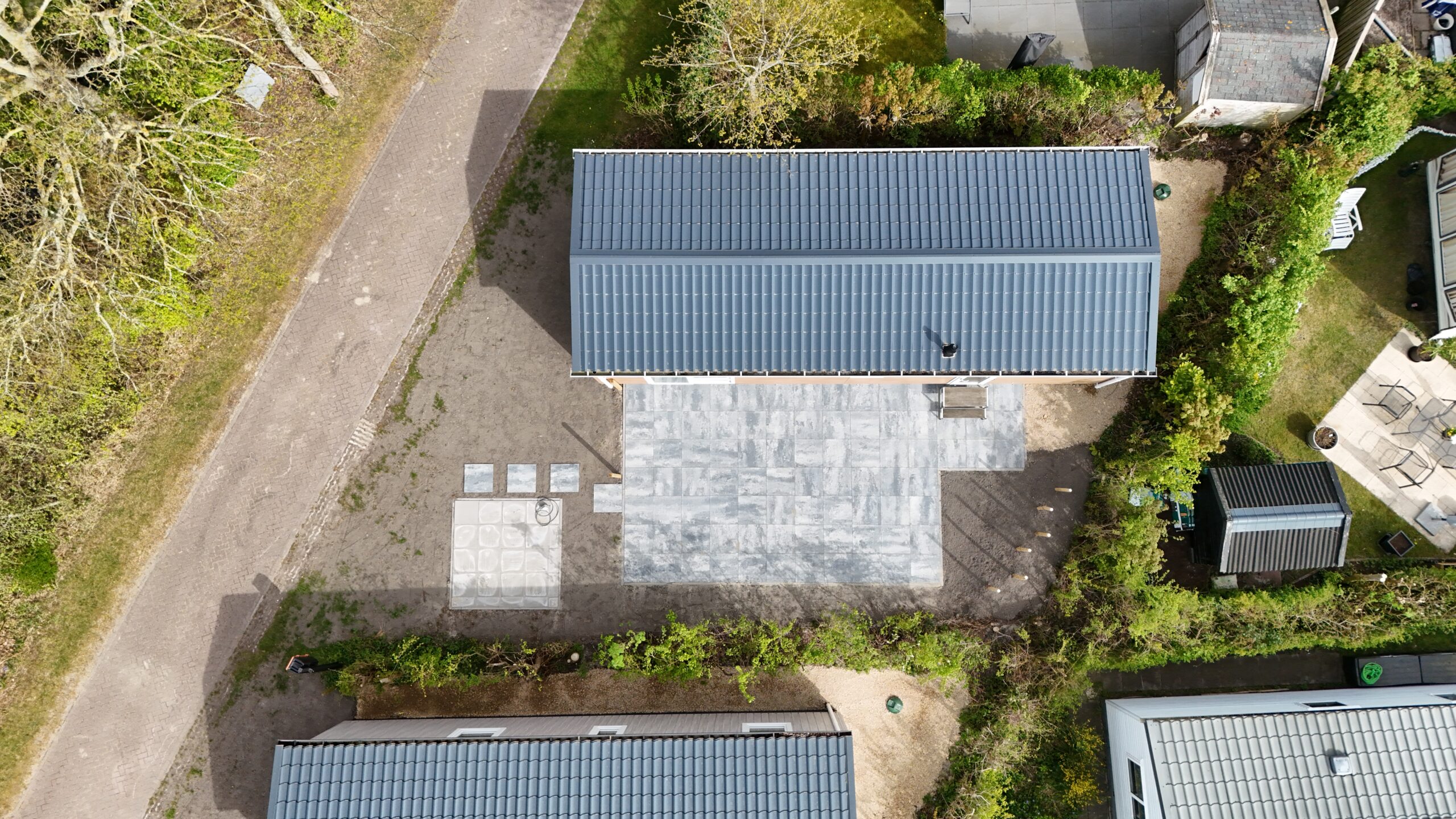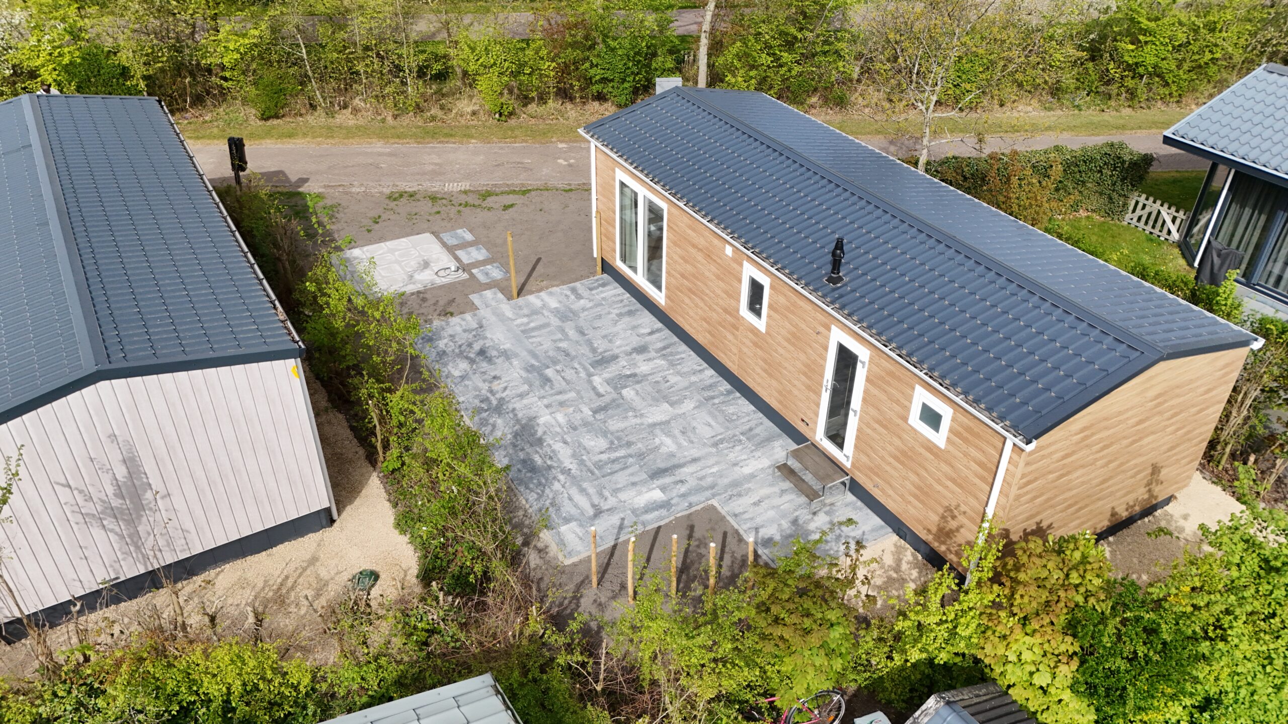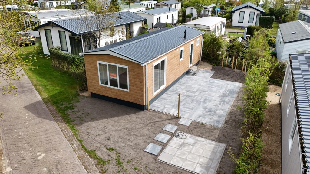 Op kavel C24 is een nieuw chalet geplaatst van het merk Arcabo. Er is gekozen voor een maximale maat van 10.50 × 4 meter. Zo heb je een fijne leefruimte maar blijft er toch nog voldoende plaats over op de kavel voor de houten berging en een terras.