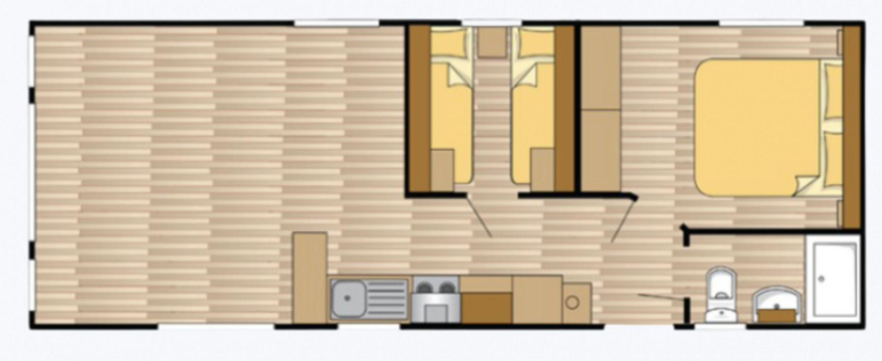 Het chalet heeft een frisse, moderne uitstraling en is van alle gemakken voorzien. Met twee slaapkamers inclusief bedden, genoeg leefruimte en een fijne keuken is dit een heerlijke plek om met z’n vieren te ontspannen.