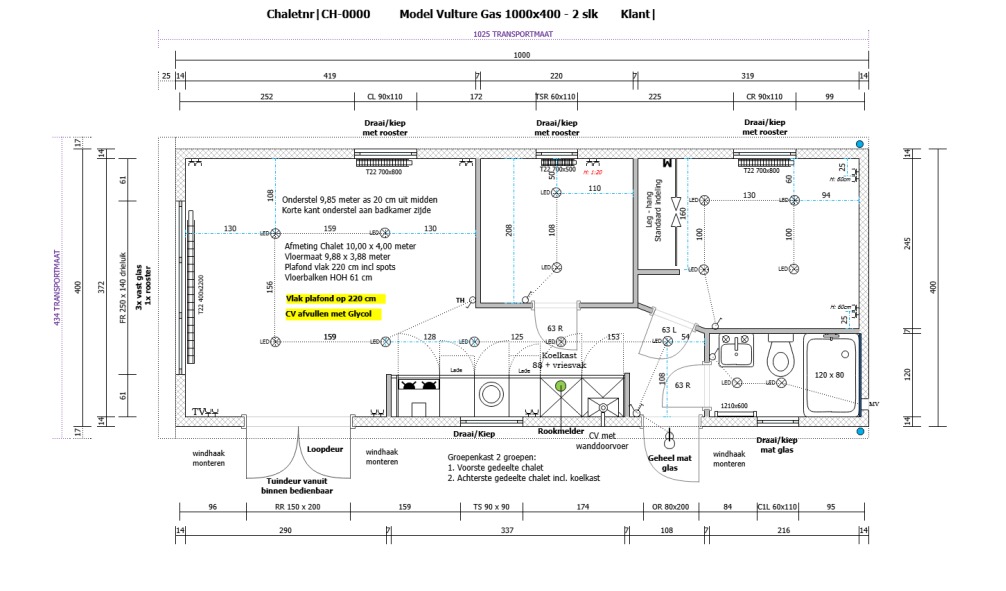 Naast het plaatsen van een schuurtje is ook de aanleg van de tuin bij de verkoopprijs inbegrepen. Het chalet is qua meubelen helemaal naar eigen wens in te richten.