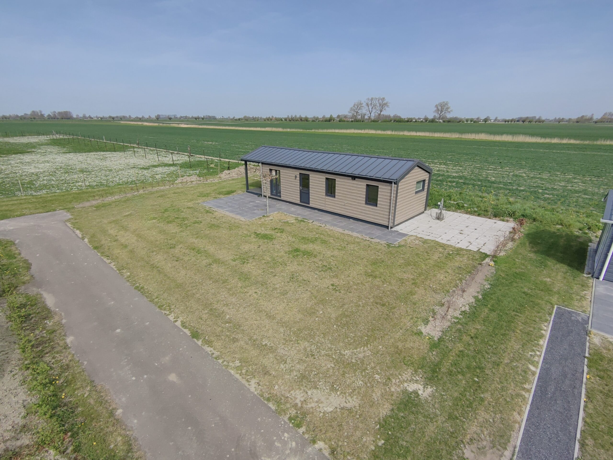 De naam van het chalet “Weideblik” past perfect bij dit bijzondere chalet, dat staat op het uiterste hoekje van het park. Zodra je hier aankomt, voel je het meteen: dit is een plek van rust, ruimte en groen. Het vrije uitzicht over de uitgestrekte landerijen maakt het plaatje compleet.