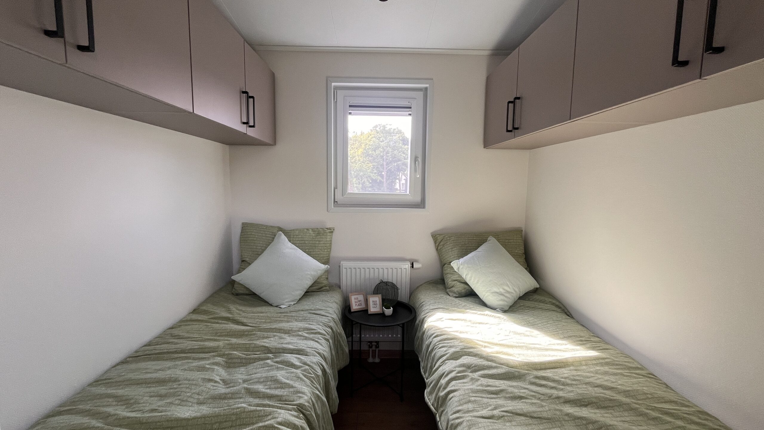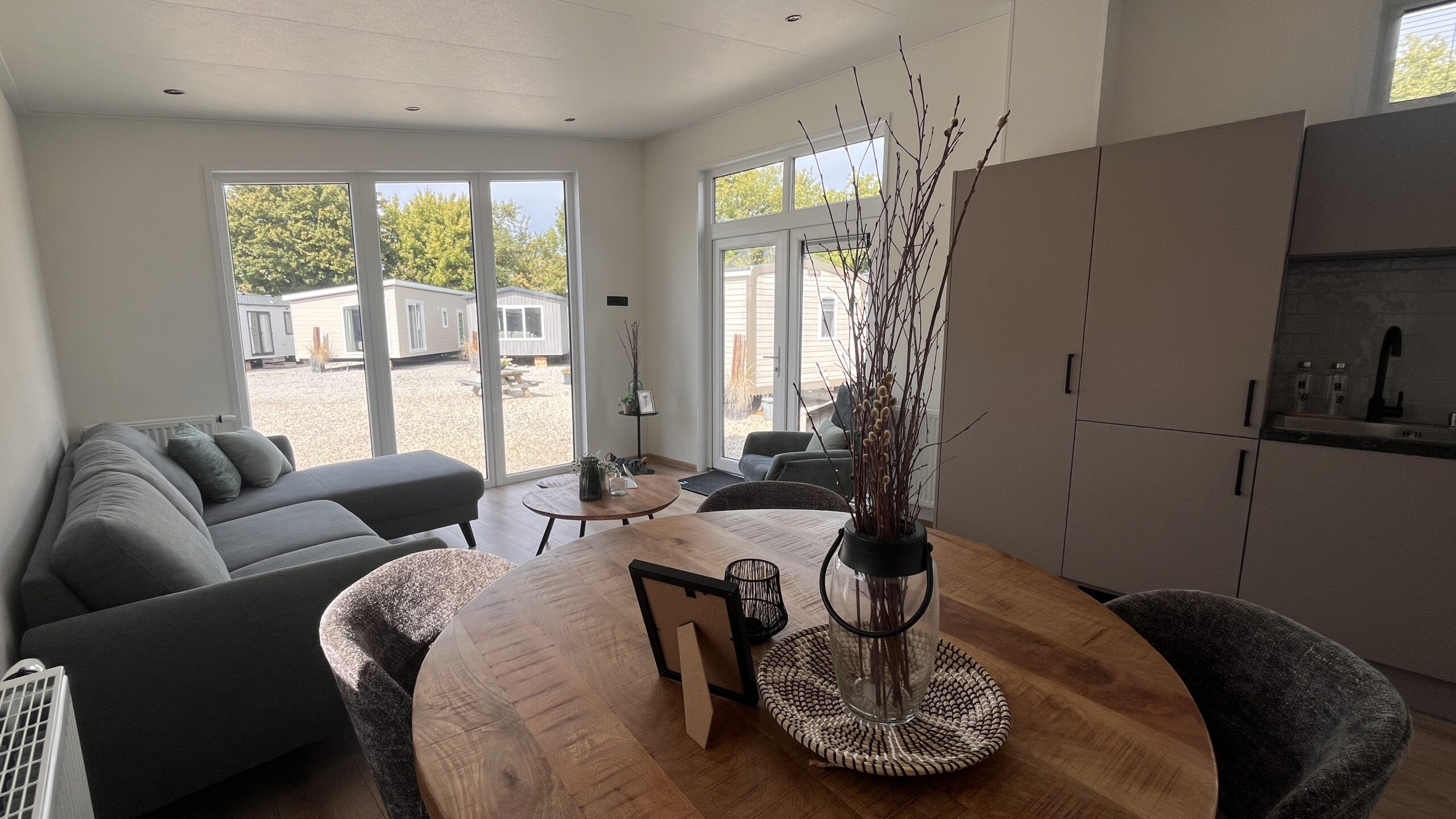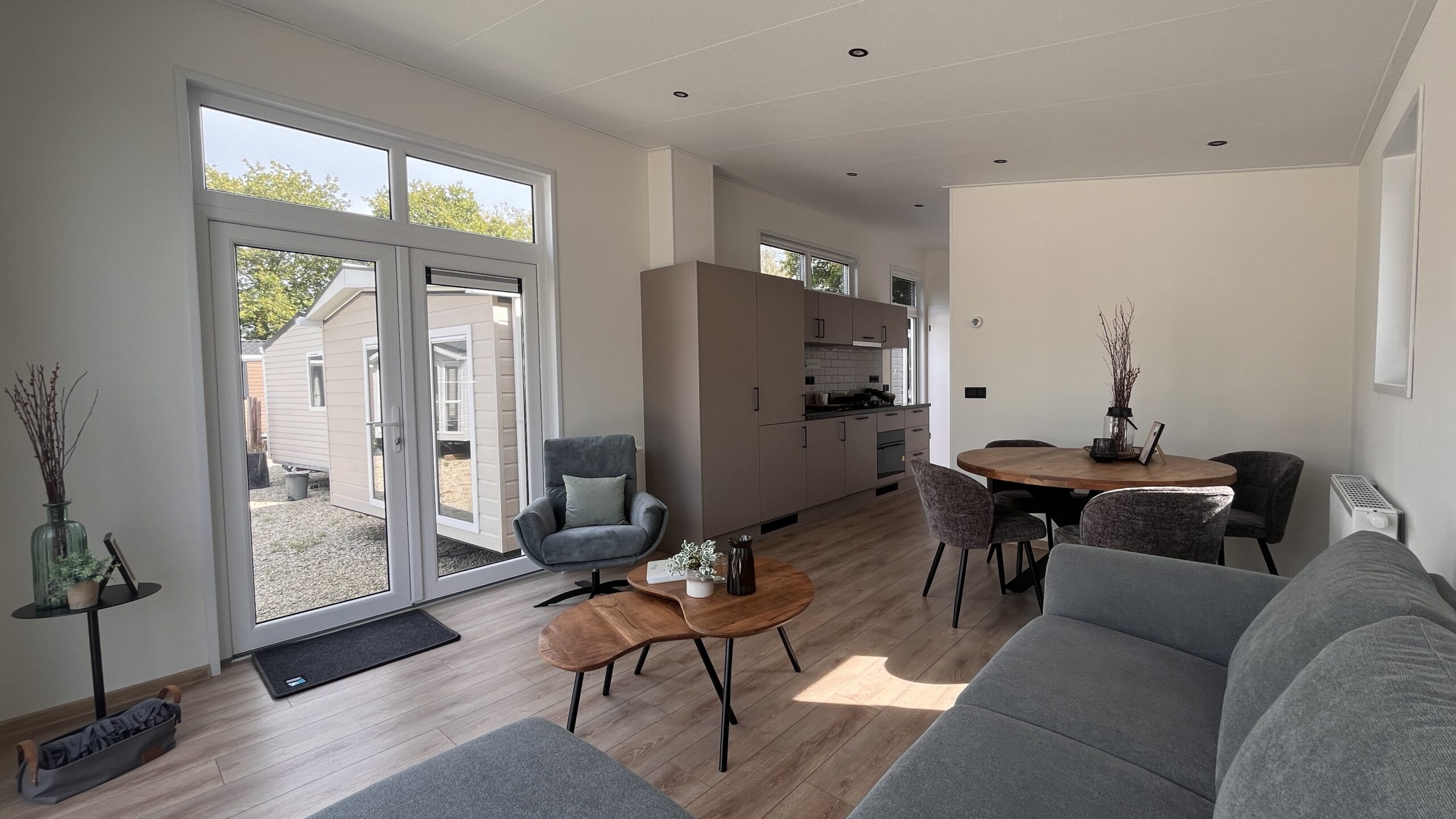 Dit compacte chalet, de Zeerog, is een stijlvol en praktisch ingericht pareltje. De slimme indeling biedt alles wat je nodig hebt voor een comfortabel verblijf. Er is een sfeervolle masterbedroom en een aparte slaapkamer met twee eenpersoonsbedden. De moderne badkamer beschikt over een luxe regendouche en de vloer is met echte tegels bekleed. Dankzij de vele ramen oogt de woonkamer licht en open, terwijl de strakke keuken er naadloos op aansluit. Zo combineert de Zeerog een knusse sfeer met optimaal gebruik van de ruimte.