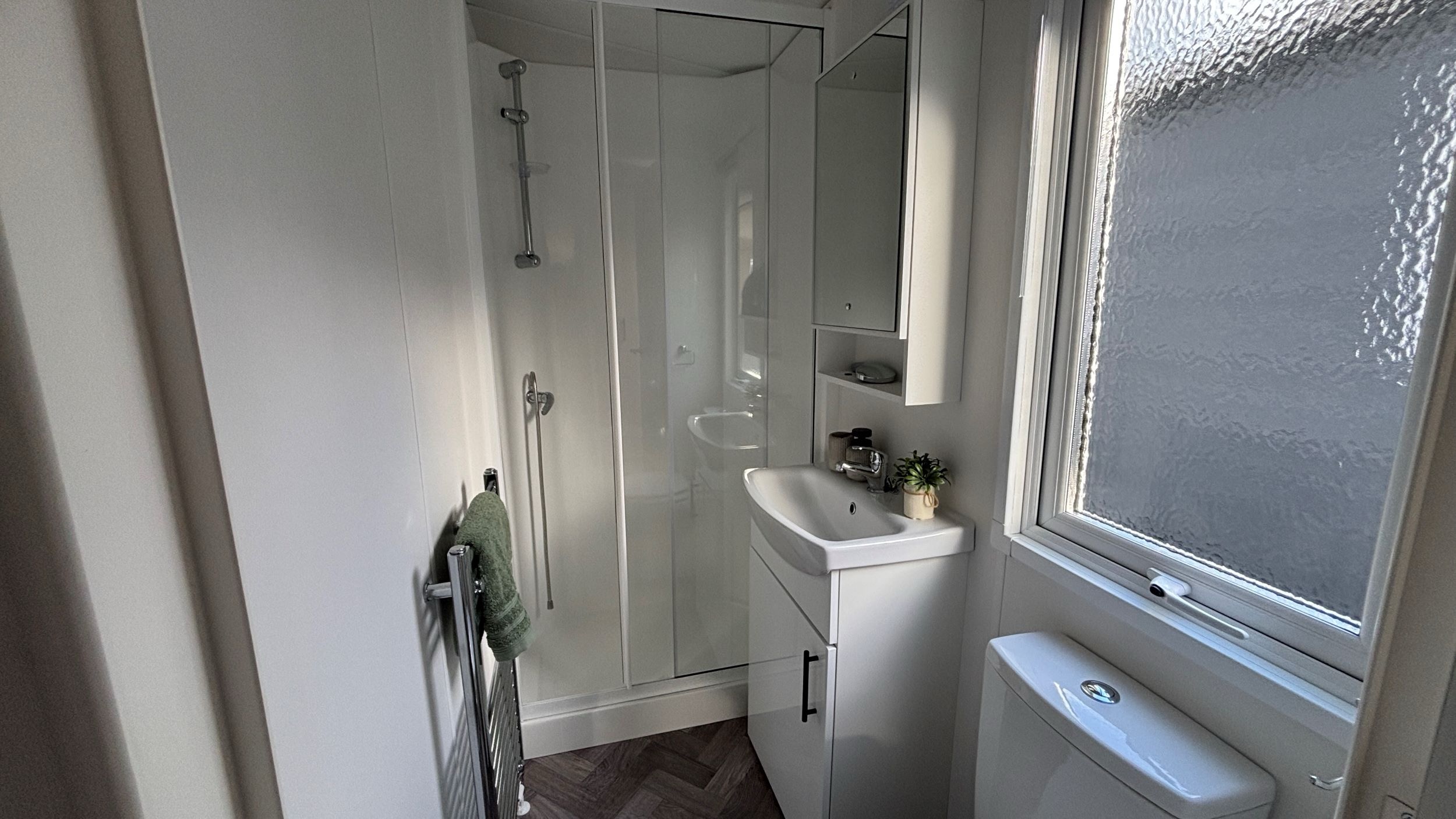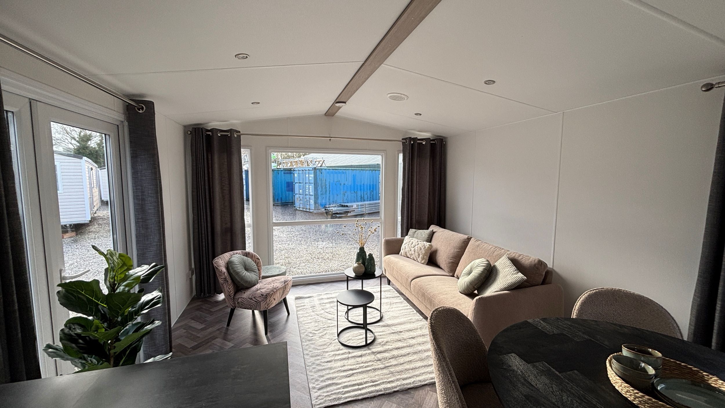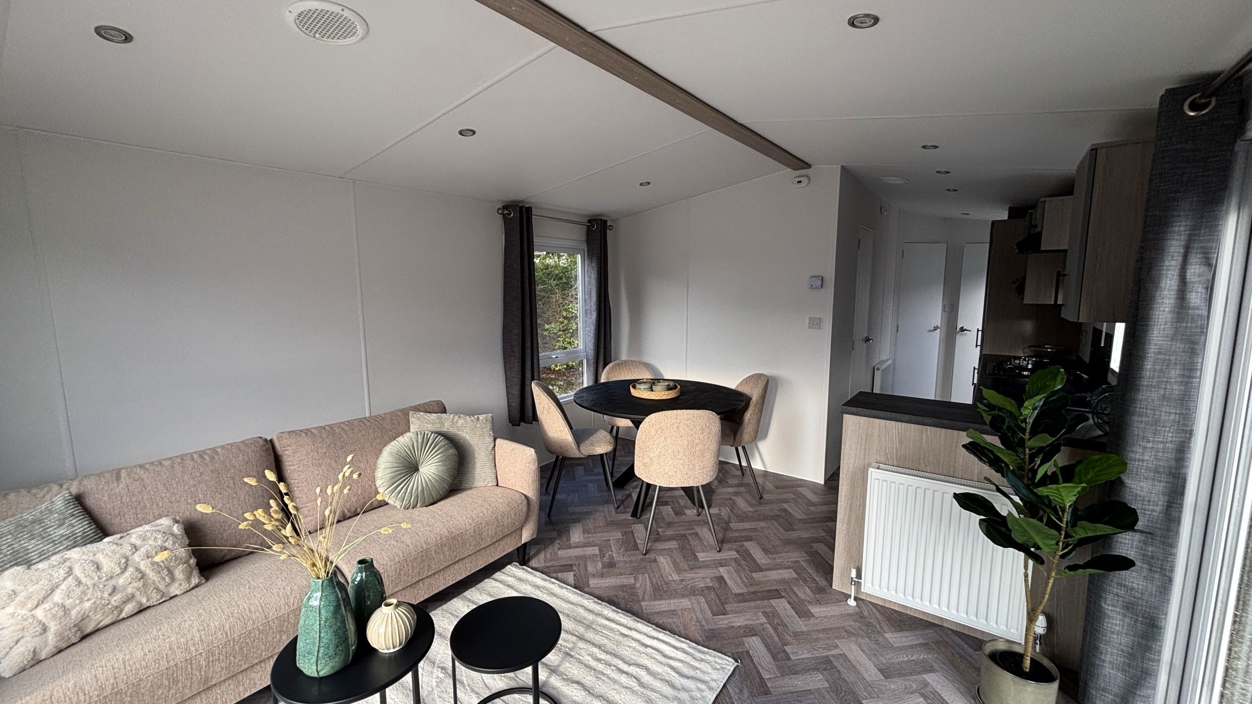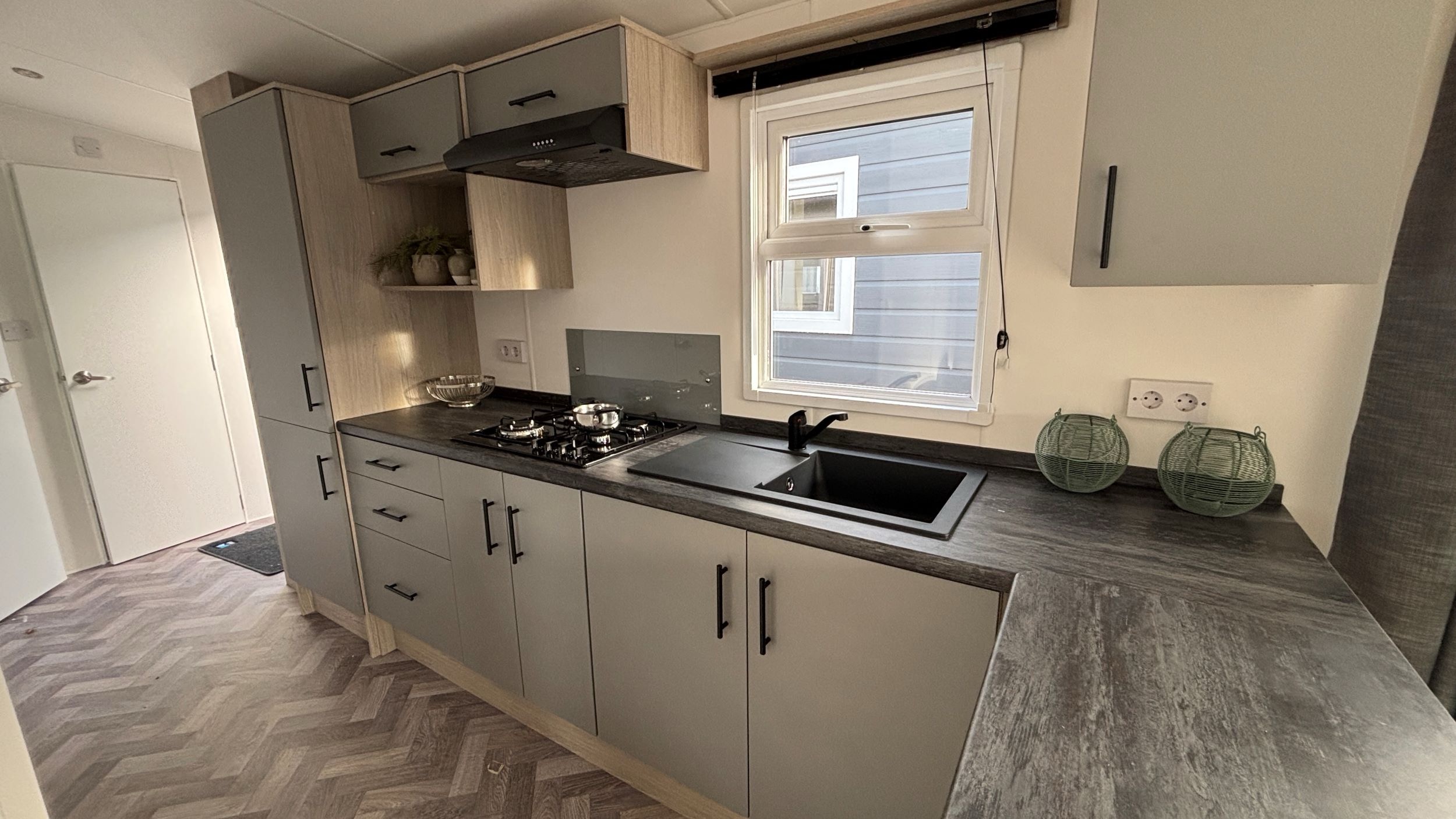 De indeling van dit chalet staat vast, er zijn twee slaapkamers met bedden, een badkamer en keuken maar ook een fijn woongedeelte. De kleuren en materialen van het interieur zijn op elkaar afgestemd. Licht en neutraal, dat past bij iedere woonstijl. De volgende stap is het plaatsen, aansluiten en tot slot de tuinaanleg. Een tuinhuis is niet bij de prijs inbegrepen maar kun je naar eigen wens (laten) plaatsen en het meubelpakket met decoratie is ter overname.