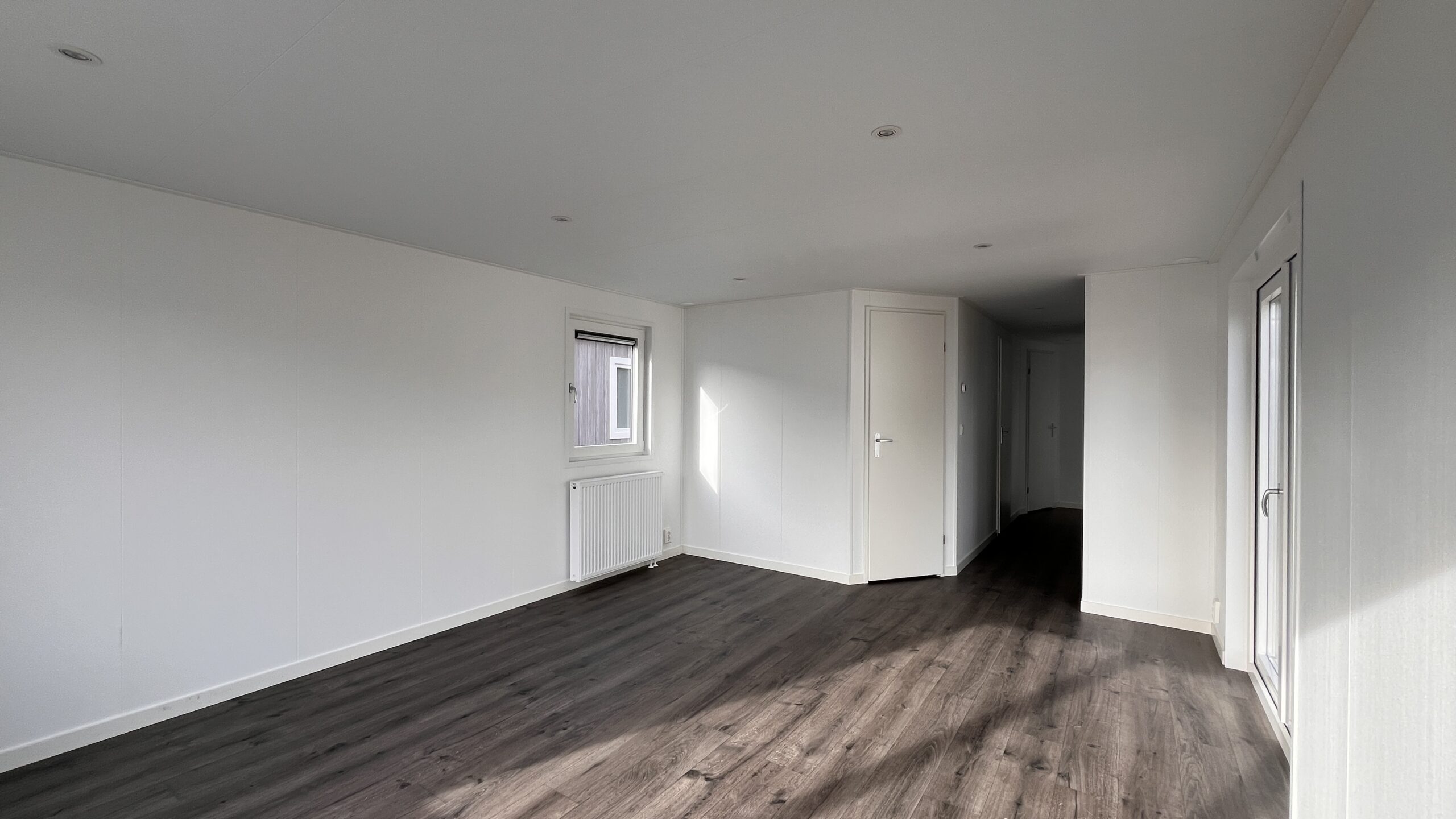 In de ruime woonkamer zorgen een draai-kiepraam en openslaande deuren voor veel lichtinval en een heerlijk ruimtelijk gevoel.