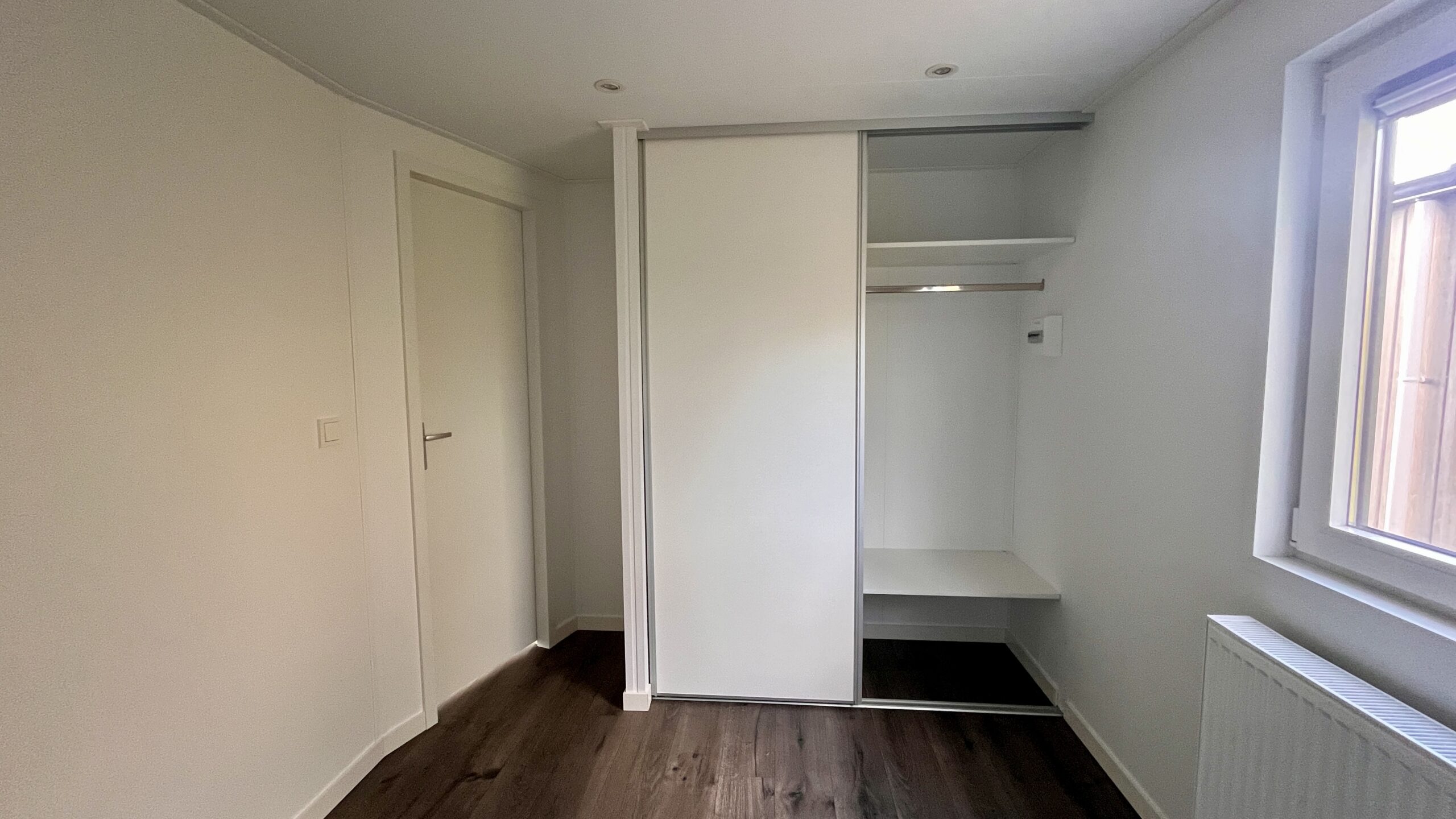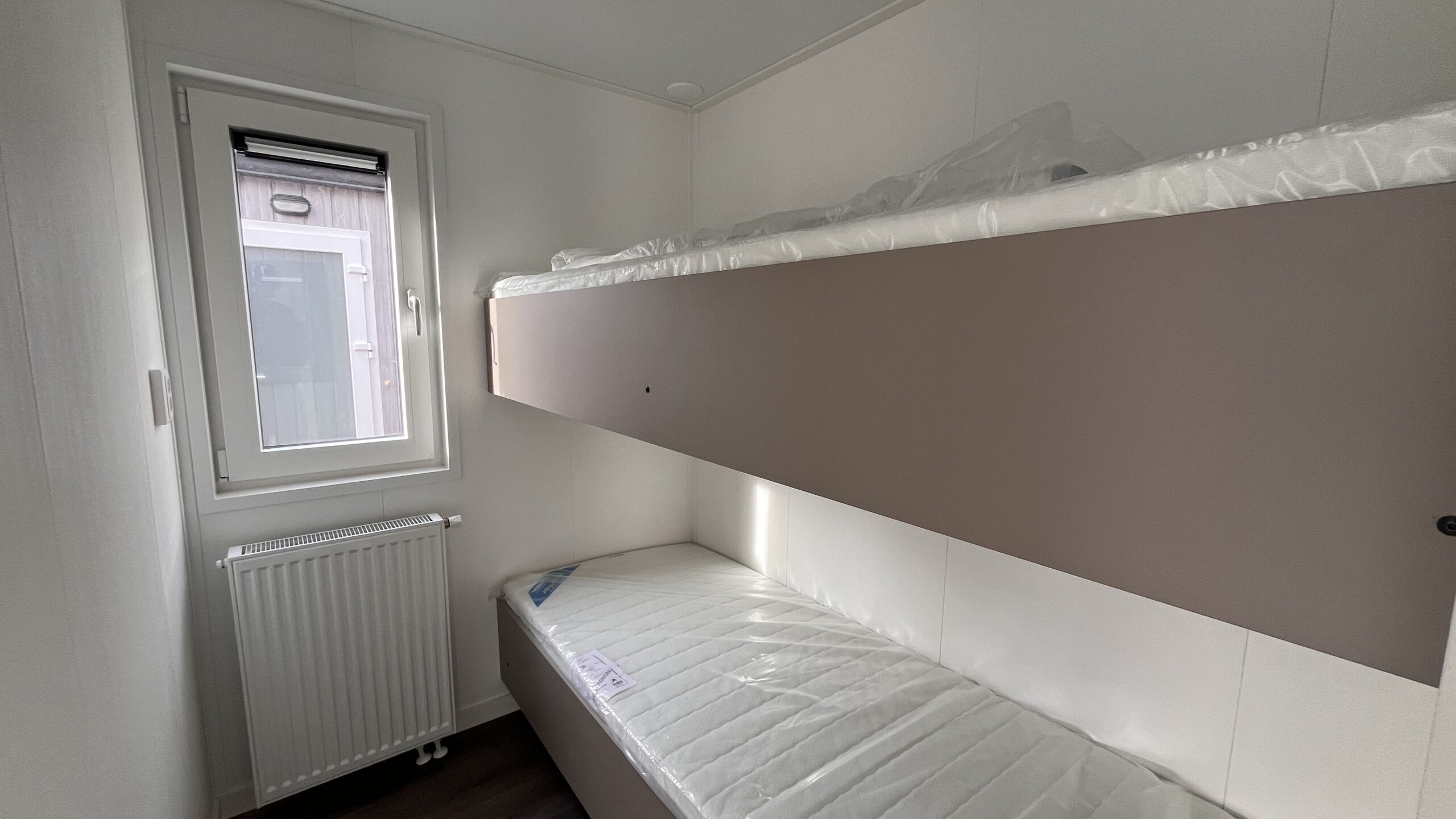 De masterbedroom beschikt over een praktische schuifkast, de tweede slaapkamer heeft handige opbergkastjes boven de bedden, en de derde slaapkamer is uitgerust met een stapelbed – ideaal voor kinderen of logees.