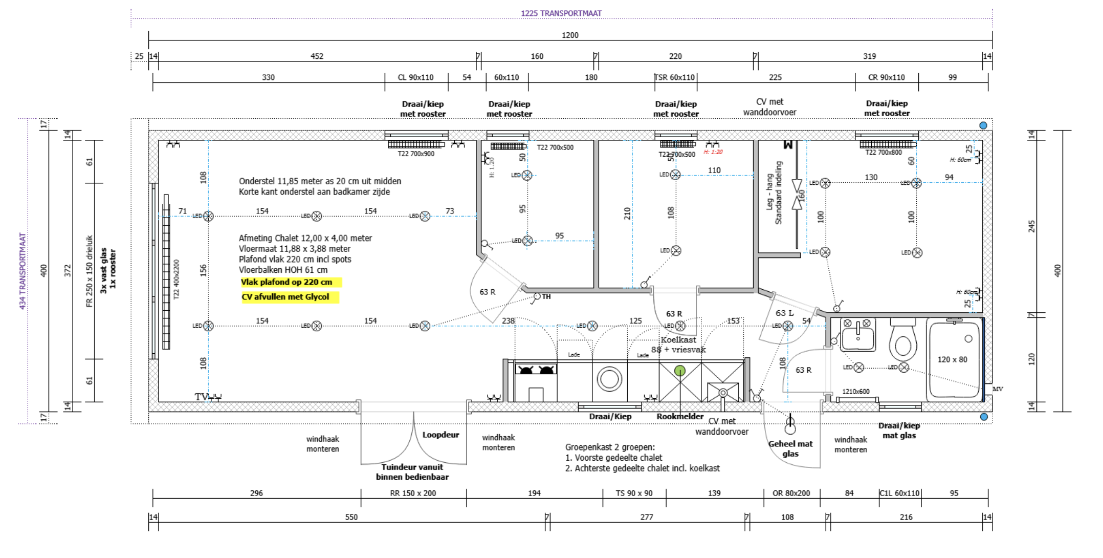 Met zijn royale afmetingen van 12 x 4 meter biedt dit chalet een sfeervolle leefruimte waar comfort en gezelligheid samenkomen – de perfecte plek om te ontspannen en samen te genieten.