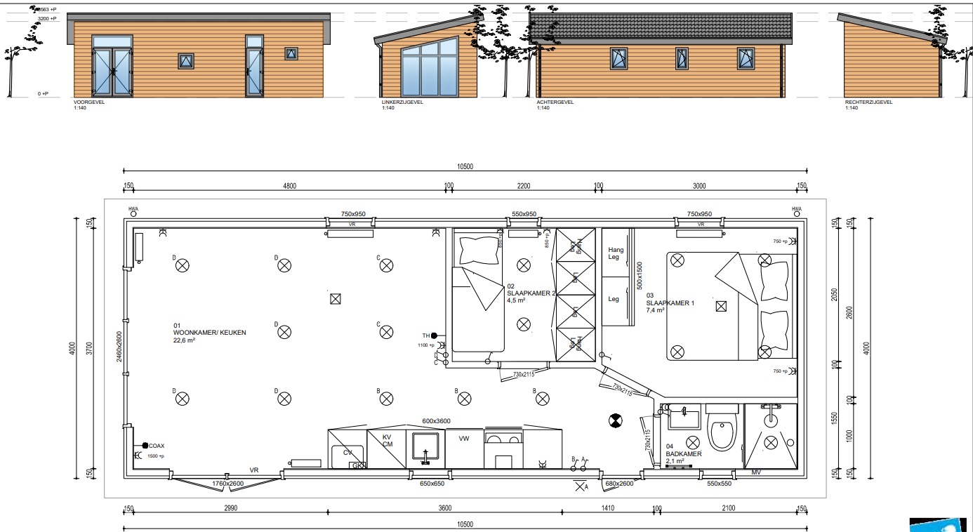 De Zeerog van 11 x 4.00 meter heeft een stijlvolle Prolin buitenbekleding, een lessenaarsdak en is praktisch ingericht van binnen.